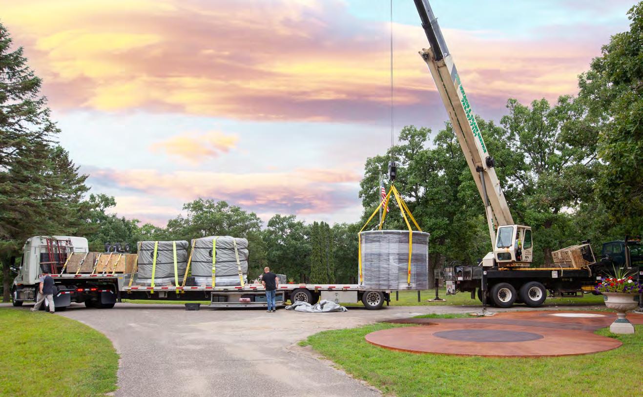 They are built in our manufacturing facility in northwestern Minnesota and delivered in one piece to your location on the Eickhof truck. We assist in setting your columbaria on your foundation.