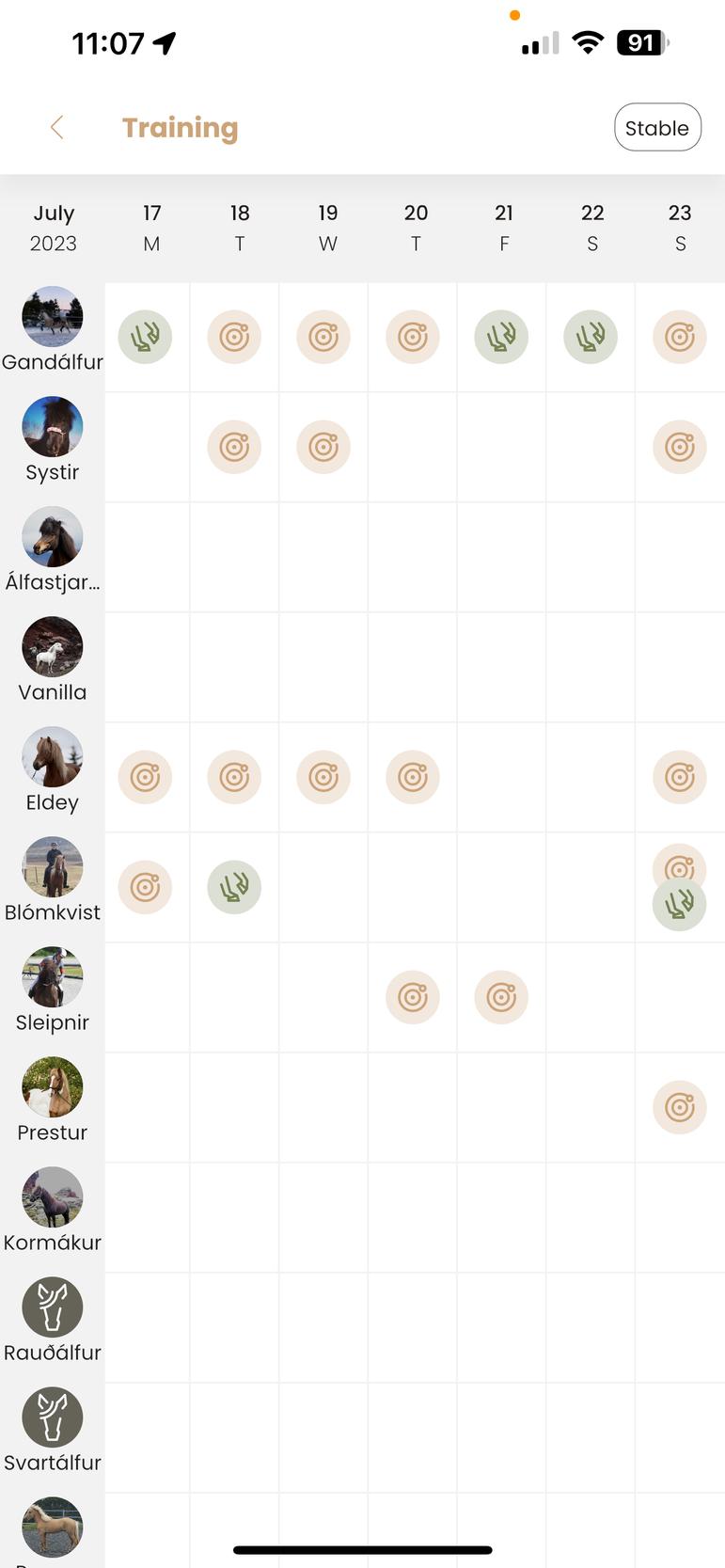 Ási and Hanna Magga went to work on training in other places during the summer and Hanna Magga went east of the mountains a lot until she went to Hólar in 2015 which is when she moved out of the family home indefinitely. Today, she works at Árbakki with her boyfriend, Gústaf Ásgeir Hinriksson. Ásmundur stayed a long time with Sigurður Sigurðarson at Þjóðólfshagi, then went to Efsti-Dalur and on to Skeiðvellir. Ásmundur was then training in Keflavík for two years with his wife Stella Sólveig Pálmarsdóttir before they moved to Strandahöfuð in the summer of 2014 where they still are today.