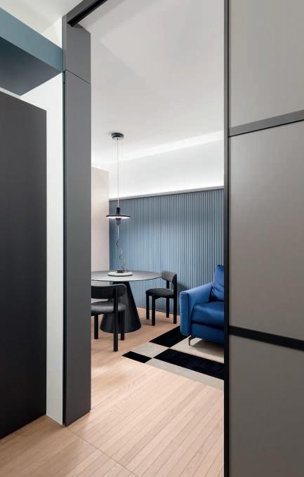 Ecco un approccio decorativo capace di dialogare con le esigenze del living contemporaneo, valorizzando gli ambienti con un’estetica sofisticata che unisce design, funzionalità e identità stilistica. Si tratta del pannello da parete Dorique, opera del designer belga Bertrand Lejoly, una raffinata reinterpretazione in chiave contemporanea delle colonne scanalate dell’architettura classica. Con le sue linee verticali essenziali e il suggestivo gioco di luce e ombra che ne scaturisce, Dorique trasforma la parete longitudinale dell’area giorno in modo discreto, ma deciso, sublimato dalla tonalità azzurro acciaio, una scelta cromatica che dona carattere e minimale raffinatezza agli interni. Questo elemento di design conferisce all’ambiente una forte identità visiva, combinando estetica e funzionalità, e si integra perfettamente con la filosofia di Contract District Group, che punta a valorizzare gli immobili attraverso soluzioni d’arredo di alta qualità. L’adozione di Dorique nel bilocale pilota del progetto Contract District Group testimonia la capacità dell’azienda belga Noël & Marquet, specializzata in elementi decorativi, contribuisce a dialogare con le nuove esigenze del mercato immobiliare, offrendo soluzioni che coniugano artigianalità, innovazione e stile contemporaneo, definendo nuovi standard nel settore della ristrutturazione “ready to rent” e portando design e qualità nei progetti di rigenerazione urbana.