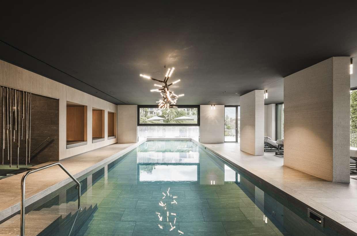 attualmente una piscina riscaldata, mentre la torre ospita una fantastica - e assai romantica - area relax. Il nucleo di comunicazione verticale è concepito come un elemento scultoreo. L’ascensore, realizzato su misura, ricorda un orologio che consente la visione degli ingranaggi, in questo caso dei macchinari. La scala si sviluppa tutto attorno, illuminando l’ambiente con la luce indiretta proveniente dai gradini di vetro.