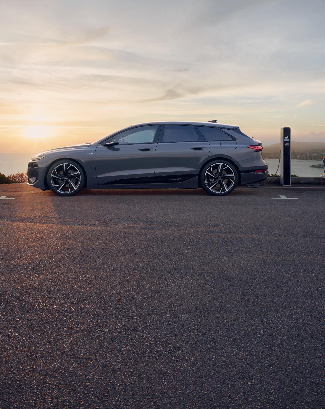 L’Audi S6 Avant e-tron conquista per l’autonomia assai elevata e la potenza di ricarica rapida. Davvero eccezionale anche per accelerazione e stabilità grazie alla trazione integrale elettrica quattro. Linee pulite, coda da coupé e un Cx di 0,21, il migliore mai ottenuto dall’Audi su un modello di questa categoria, la scolpiscono nei suoi 4,93 metri di carrozzeria, facendone un’auto elegante ma discreta nell’impatto visivo. La cornice perimetrale sotto il bordo del tetto enfatizza l’inconfondibile profilo Avant. L’inserto in nero al di sopra delle minigonne laterali sottolinea l’avanguardistico design e-tron che simboleggia la batteria agli ioni di litio da 800 V integrata nel sottoscocca, cuore pulsante di questo modello.