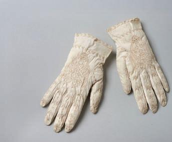 Guanti femminili da giorno, 1840 ca., mussola di cotone ricamata in bianco, Manifattura italiana.