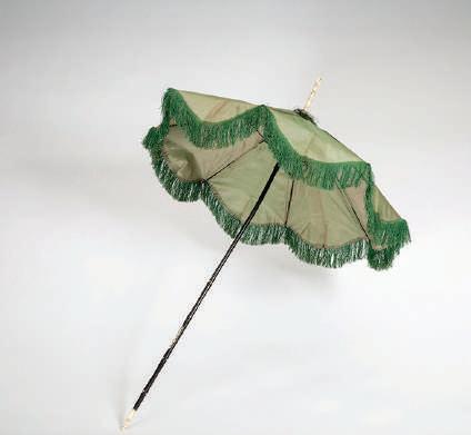 Parasole con bastone da passeggio, 1840-60, seta, legno, avorio, manifattura europea.