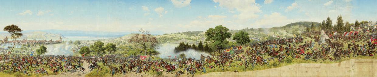 L’evento. Tema del panorama è la vittoria della “Confederazione degli Otto” nella battaglia di Morat (22 giugno 1476), scontro decisivo nelle guerre di Borgogna (1474-1477) che posero fine al ducato di Carlo il Temerario, modificando l’assetto geopolitico europeo e decretando la fama dei mercenari svizzeri, che divennero un volano di sviluppo dell’economia elvetica.