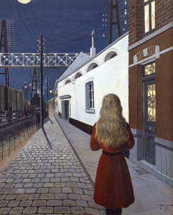AL CENTRO, PAUL DELVAUX, SOLITUDINE, 1955, OLIO SU TAVOLA, ESPOSTO AL MUSEO DI BELLE ARTI, IL TERZO DEL POLO, CHE DOPO LA SUA INAUGURAZIONE PRESENTA TRE MOSTRE DEDICATE AL TEMA FERROVIARIO