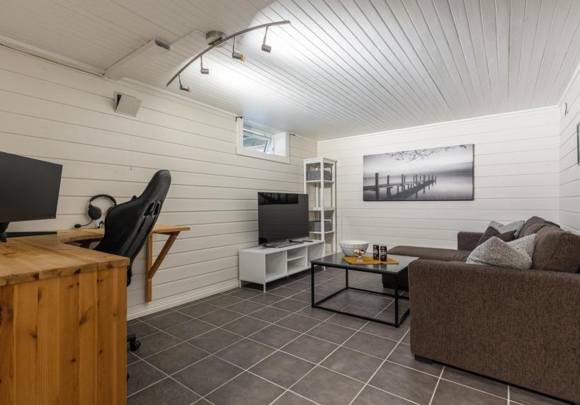 Kjeller: Kjellerstue, Walk-in garerobe, vaskerom og to boder.