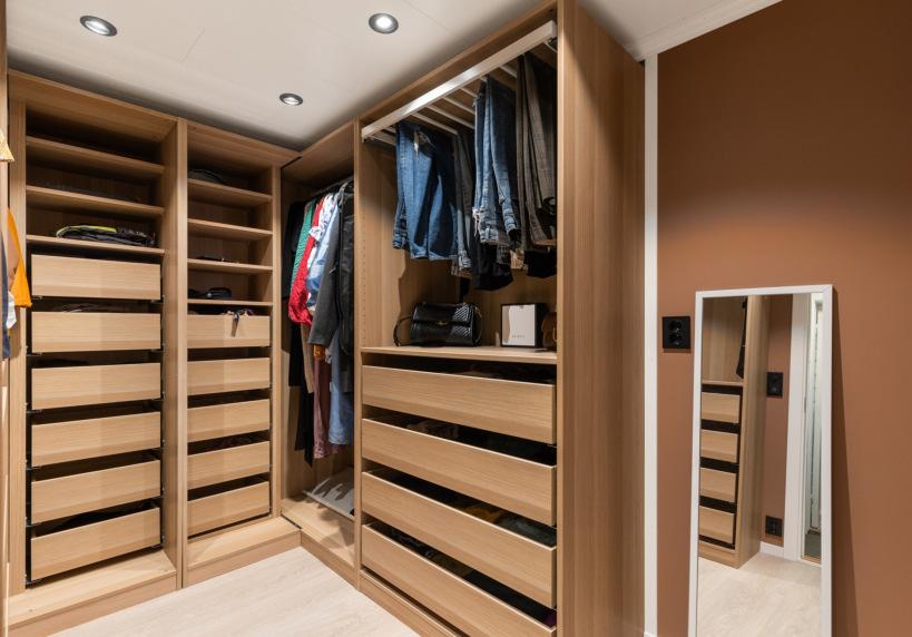 6. GARDEROBESKAP medfølger, selv om disse er løse. Fastmonterte garderobehyller og knagger medfølger. Innredning i garderobeskap, for eksempel løse eller fastmonterte trådkurver, hyller, stenger og lignende, medfølger.