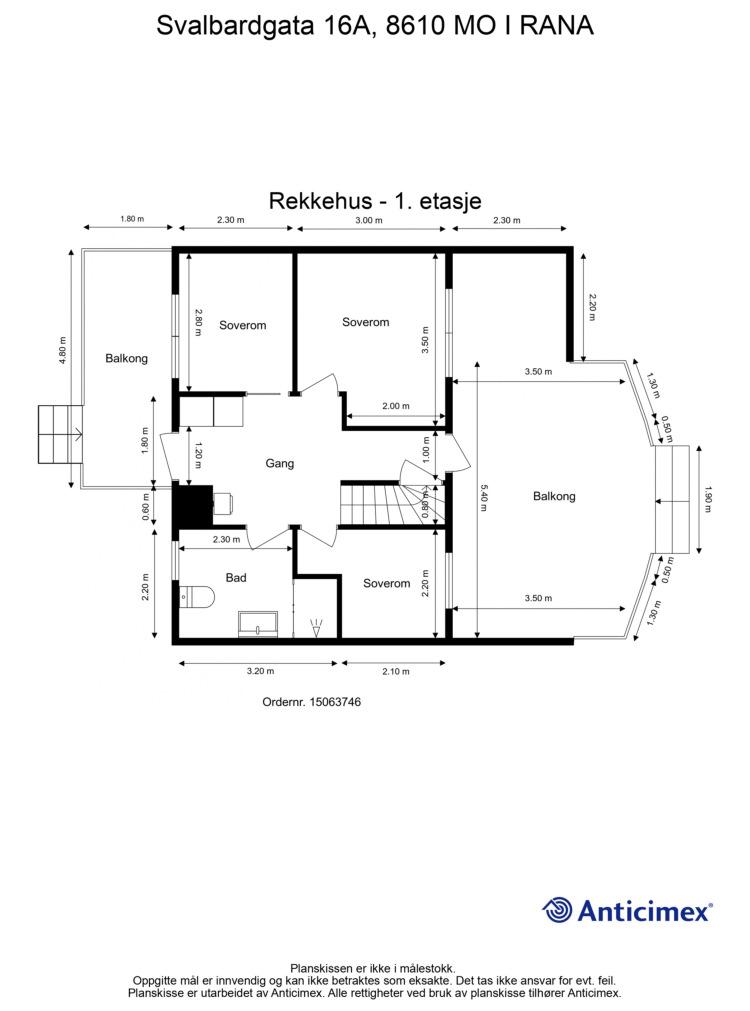 Vedlagte plantegninger er ikke målbare, og oppgitte arealer er hentet fra vedlagte tilstandsrapport. Arealene er beregnet og angitt med utgangspunkt i NS 3940:23. Eventuelle betegnelser på rom er angitt ut fra den faktiske bruken, uavhengig av hva som er godkjent hos bygningsmyndighetene.