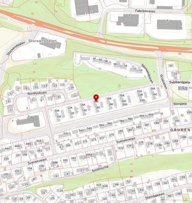 Eiendommen ligger svært sentralt på Gruben, om lag 3 km fra sentrum av Mo i Rana. Bare med et par minutters gange fra eiendommen har du dagligvarebutikk, treningssenter, restaurant, den flotte nye Gruben barneskole, kunstgressbane og den splitter nye aktivitetshallen. Eiendommen ligger med kort avstand til tur- og rekreasjonsmuligheter i Klokkerhagen elvepark både sommer og vinter. Sentrum av Mo m/ omegn byr for øvrig på et rikt service- og kulturtilbud samt flere kjøpesenter, nisjebutikker, kafeer, restauranter, helsetjenester, badeland, idrettshaller/arenaer, barnehager, skoler, høgskoler m.m.