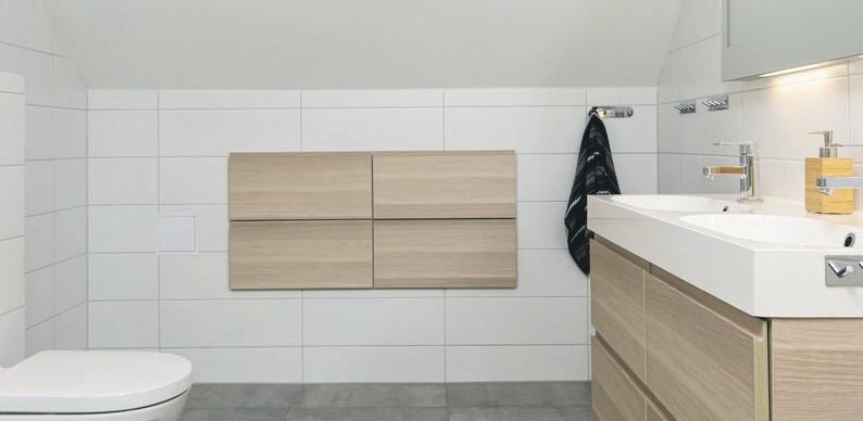 Øverst får du tre soverom og to bad, det største med inngang direkte fra hovedsoverommet. Her har du også en badstue, herlig etter en treningsøkt eller på en iskald vinterdag. De store glassvinduene knytter denne etasjen nydelig sammen med oppholdsrommet i etasjen under, og skaper et åpent luftig rom også her oppe på toppen.