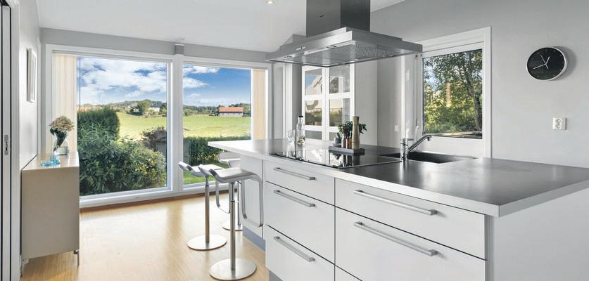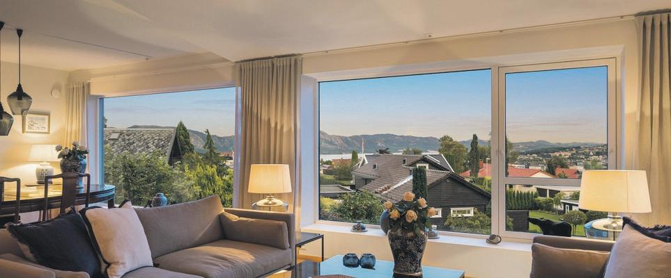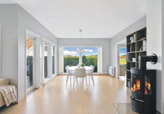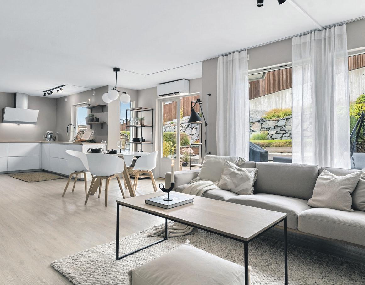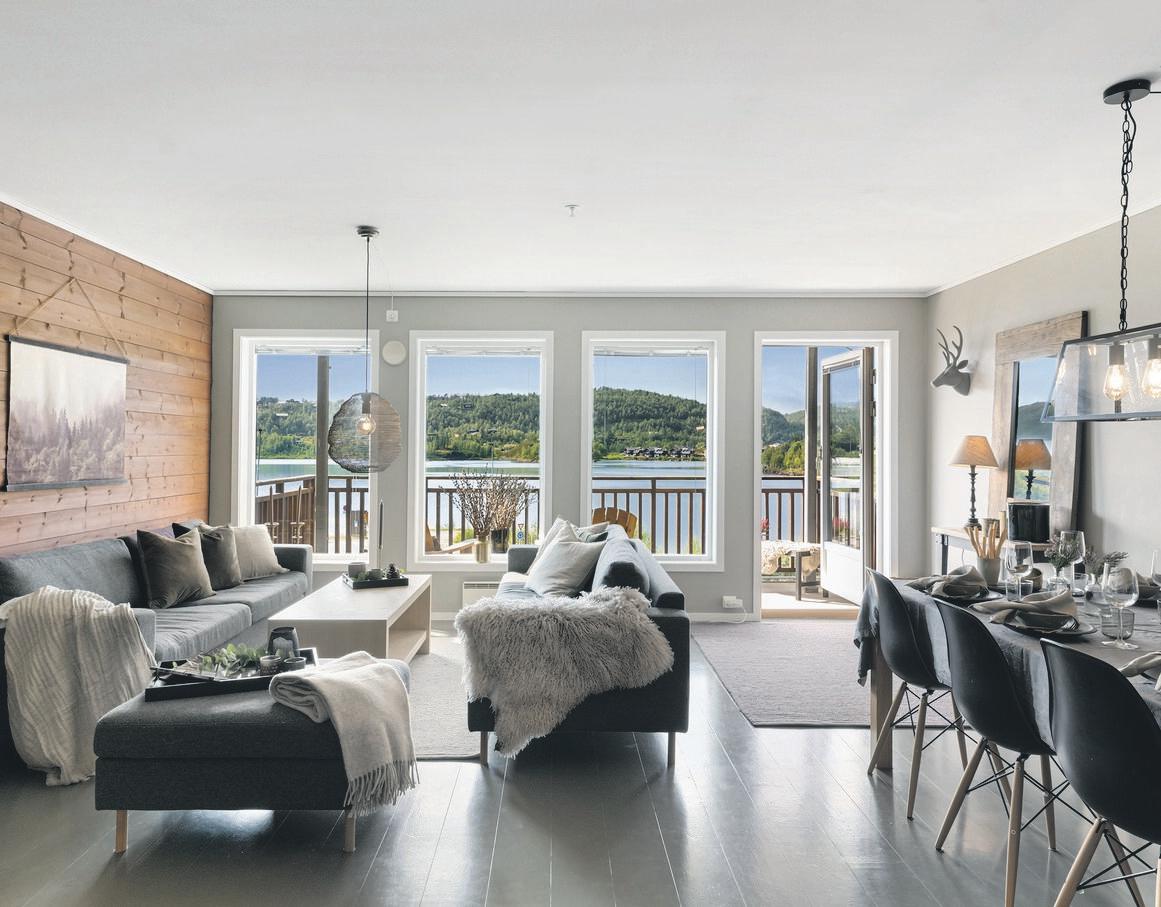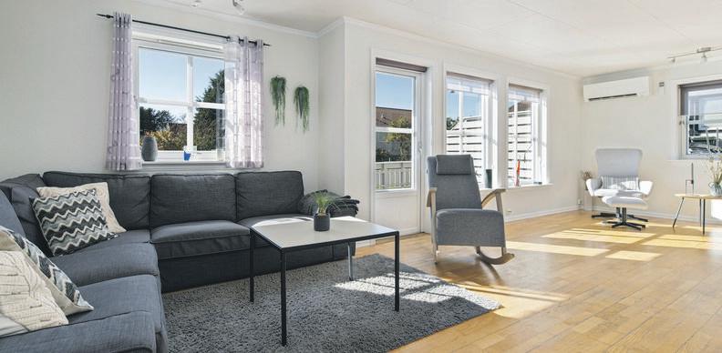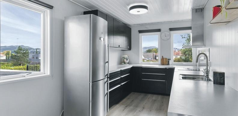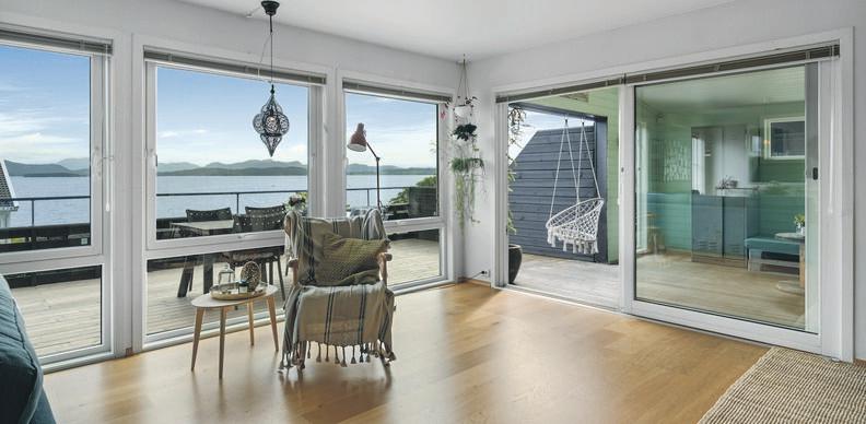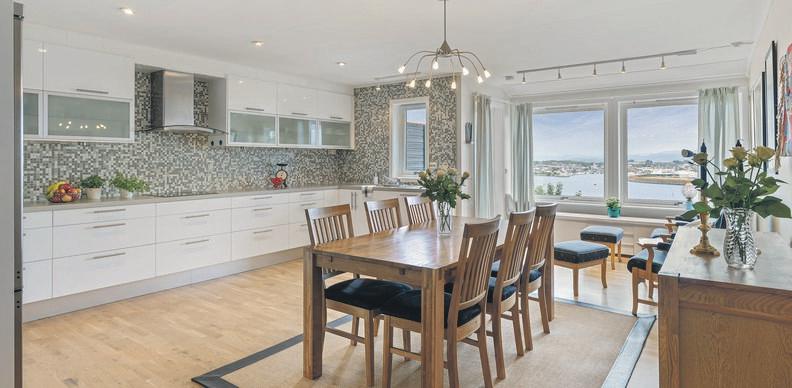 alle rom skaper gjennomgående naturlig lys og en herlig atmosfære med høy trivsel. Sjeldent godt løst, hvor kjøkken er trukket inn for seg selv, men i åpen løsning,