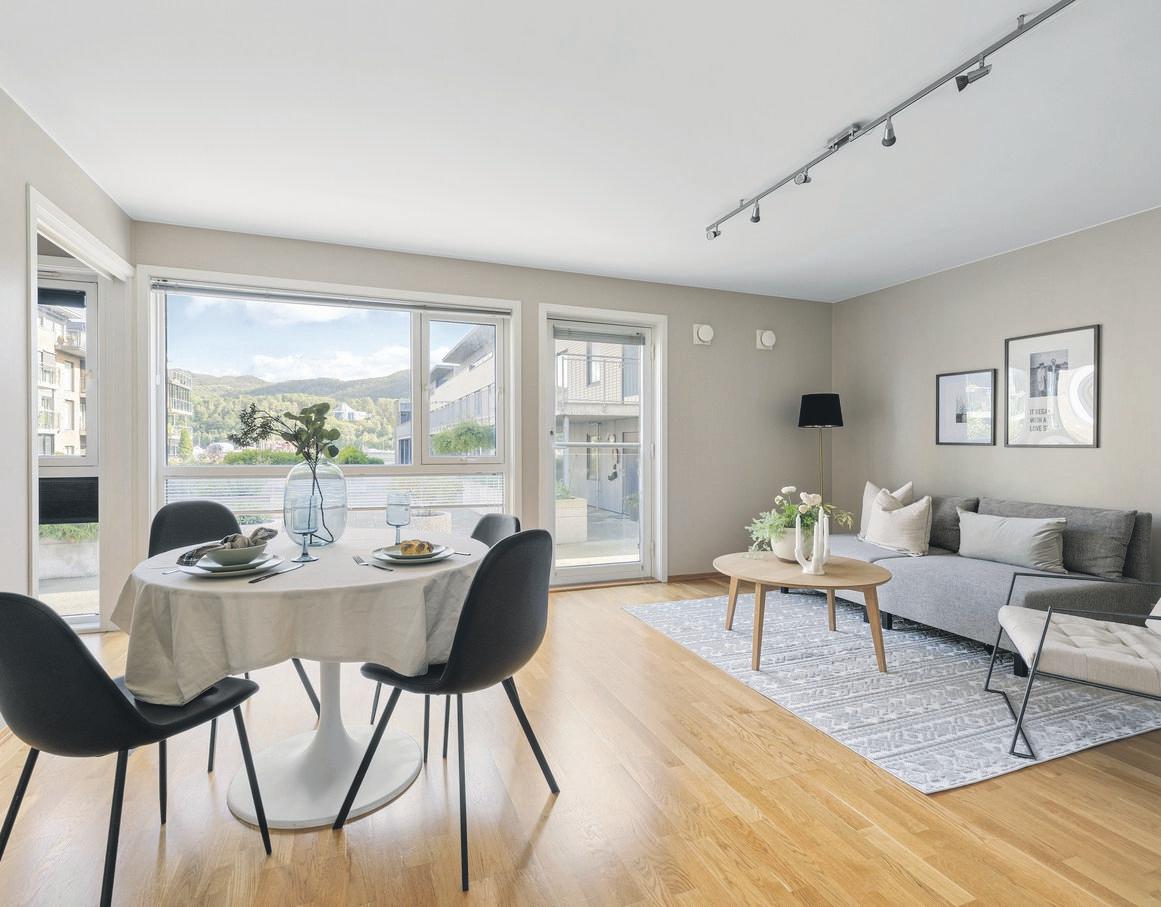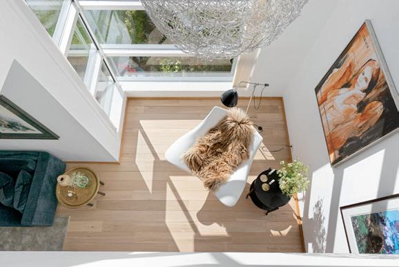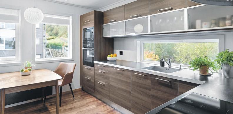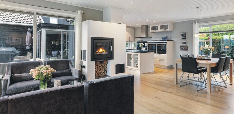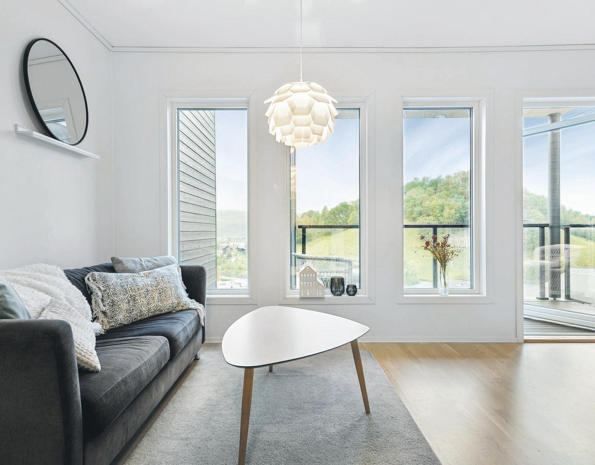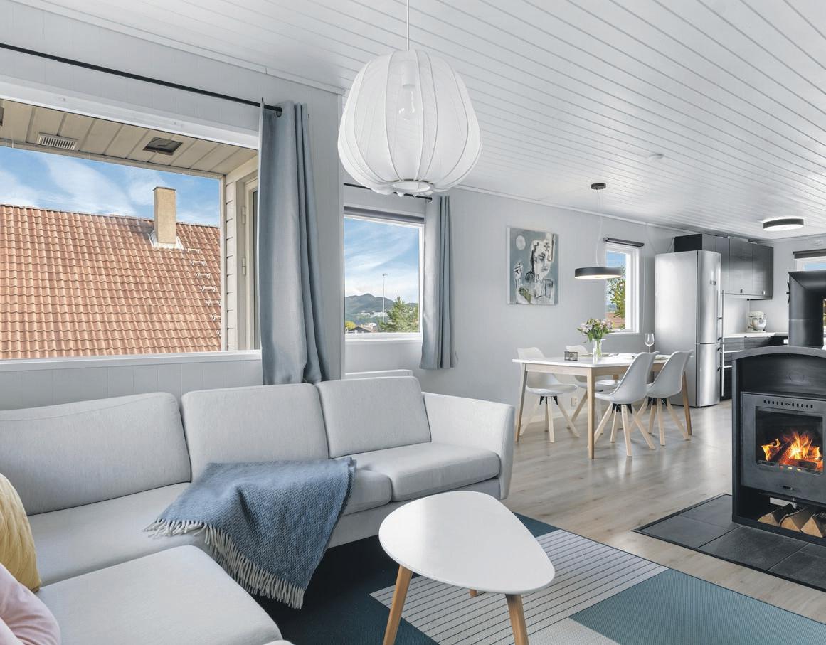 alle rom skaper gjennomgående naturlig lys og en herlig atmosfære med høy trivsel. Sjeldent godt løst, hvor kjøkken er trukket inn for seg selv, men i åpen løsning,