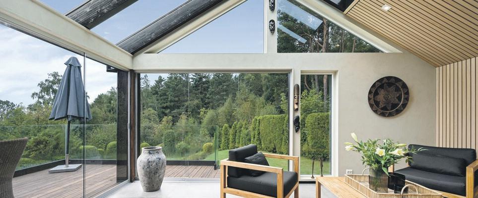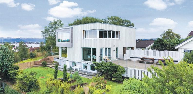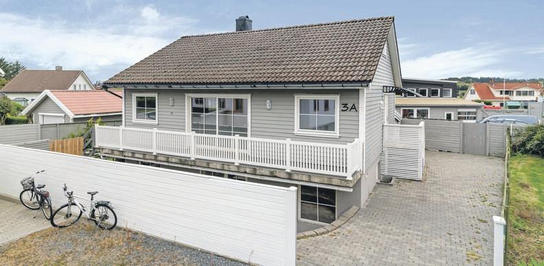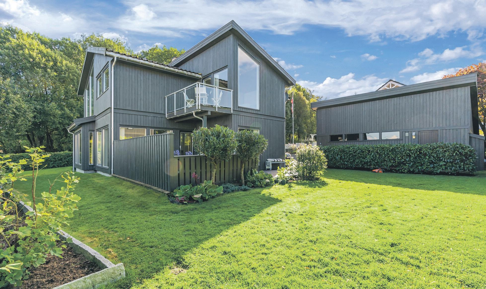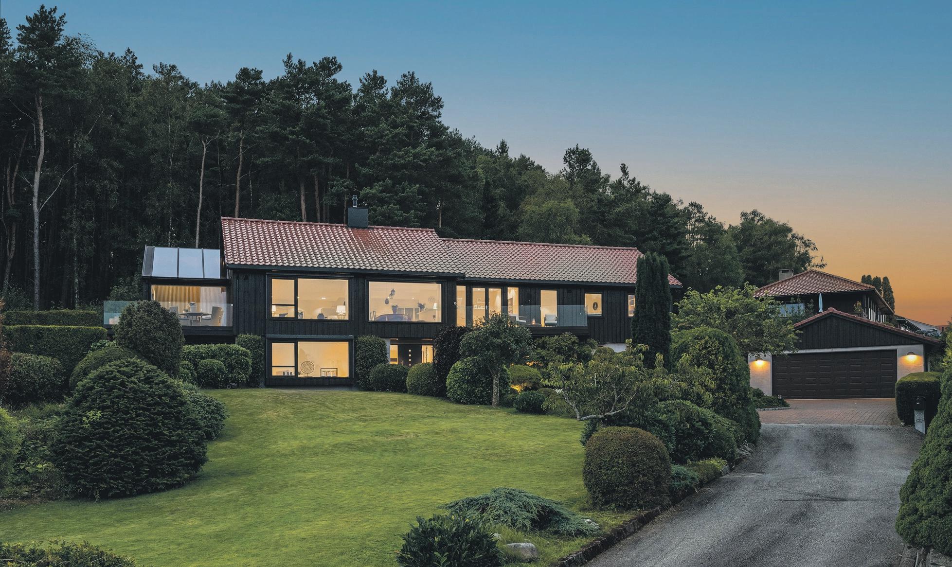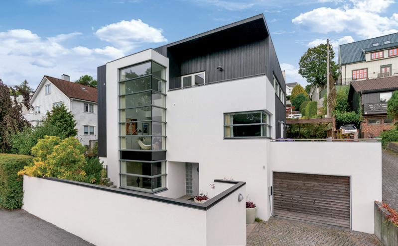 Du legger merke til huset allerede ute på gata: En litt annerledes enebolig, som stolt tar plass med sine funkisaktige, rene linjer, sitt flate tak og sine store vindusflater.