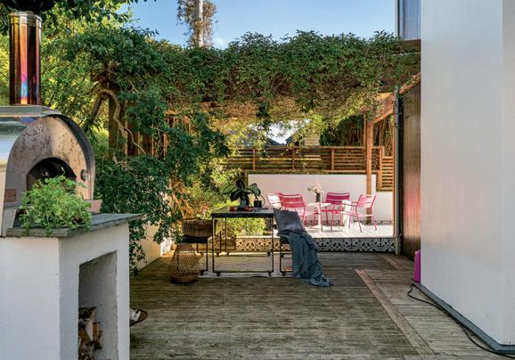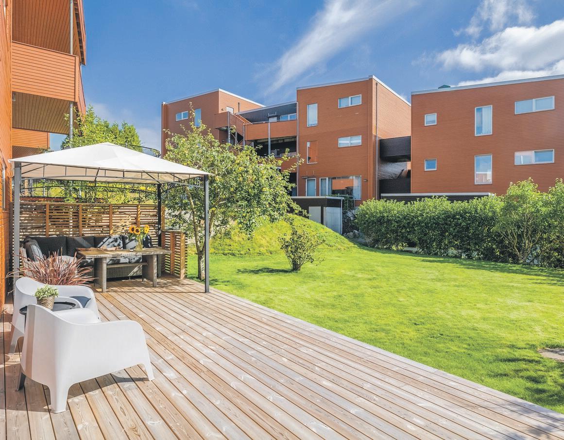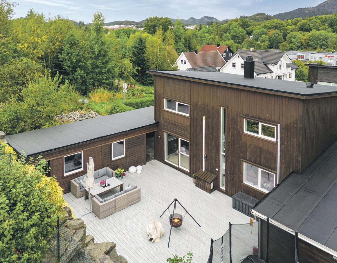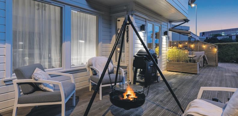 Uteområdene er et kapittel for seg: Fra den lune solkroken ved inngangen, til den lille gressplenen under epletreet, terrassen med pizzaovn, pergolaen og den flislagte patioen. I andre etasje har du også en deilig balkong.
