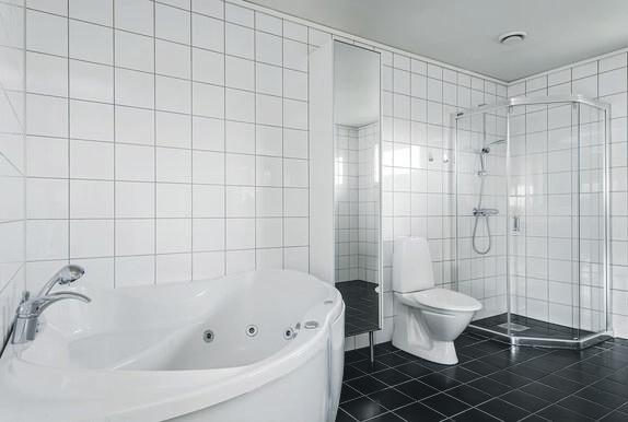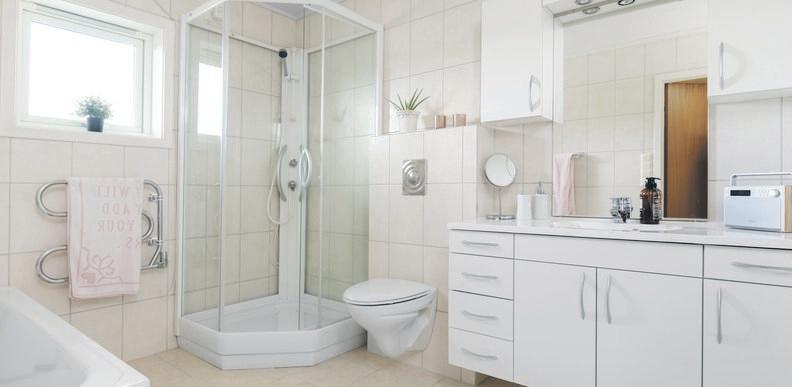 også et ekstra, lite bad, matbod, en romslig garderobe og det ene av boligens fire soverom.