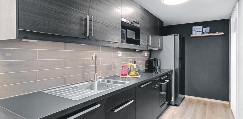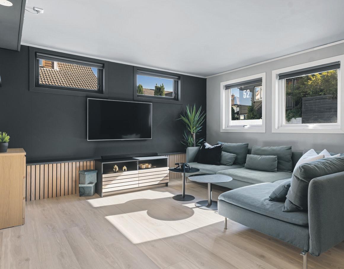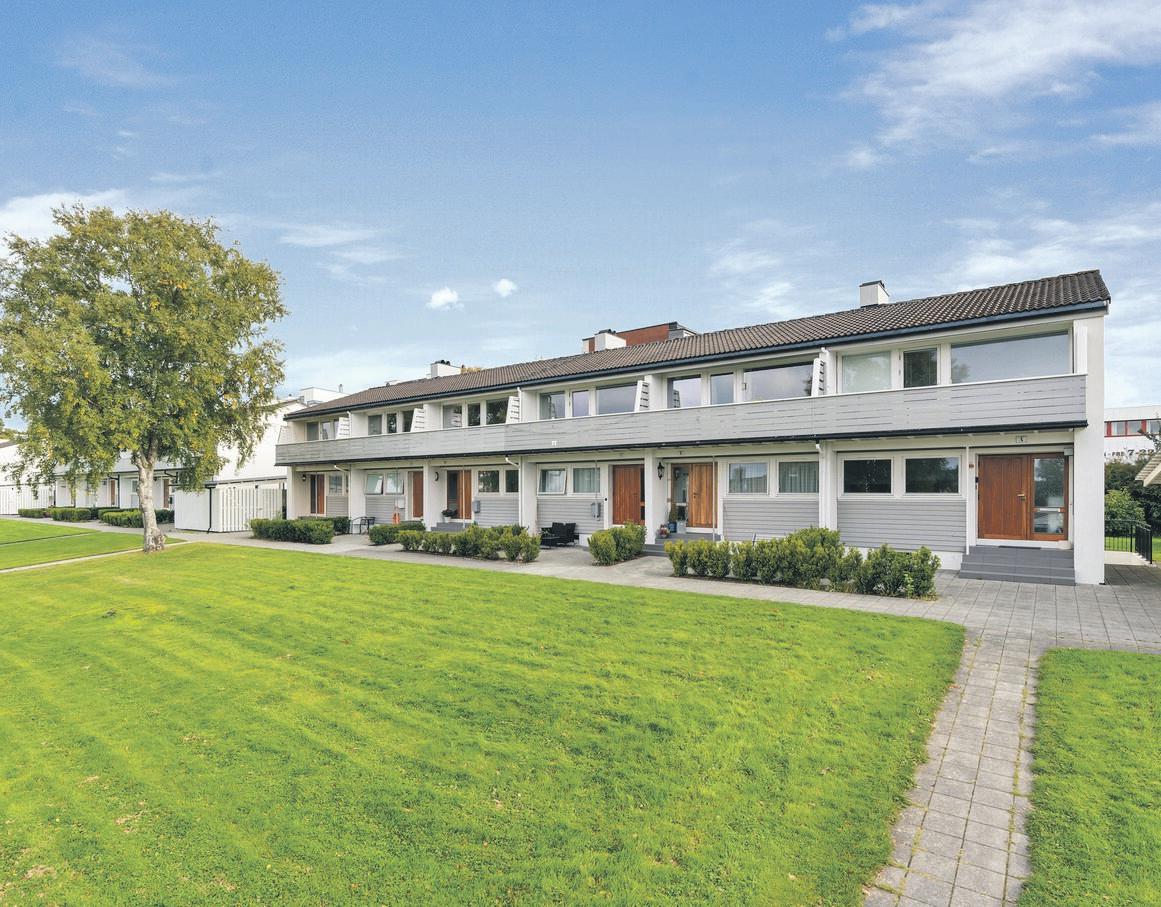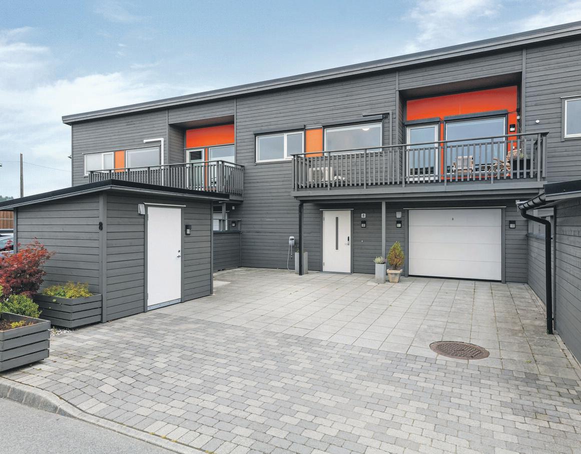 Moderne innredet enderekkehus med en gjennomført høy standard. Boligen ble betydelig renovert i 2011 og fremstår som praktisk og stilfull. Rekkehuset har en god planløsning med tidsriktig innredning. Her har man et flott kjk. med spiseplass og utsyn til hageareal. Stor romslig stue med ekstra god takhøyde. Utgang til en solfylt balkong med utsyn. Oppr. ble boligen bygget med 3 soverom. Renovering i 2011 ble planløsningen endret til