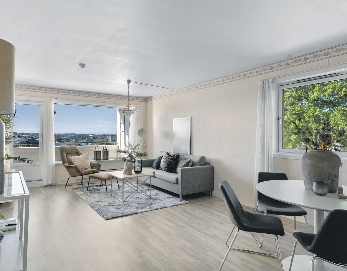 og grønne heier bak. Solrik og romslig eiendom med uterom for flerbruk, hvor du nyter solen fra tidlig til sent. Her har du noen få minutters rusletur til Sandnes sentrum, Stangeland barneskole, Skeiane ungdomsskole, matbutikk, Sandvedparken. Eneboligen er av eldre dato med renoveringsbehov. Gjennomførte oppgraderinger består bl.a av et nyere, tidløst baderom flislagt i sandtoner, utført av firma. Boligen har et godt innhold med stue i hver etasje, samt to