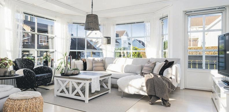 nytes over Ryfylkes fjell og solnedgang får man rett inn i stuen og på den innglassede balkongen.