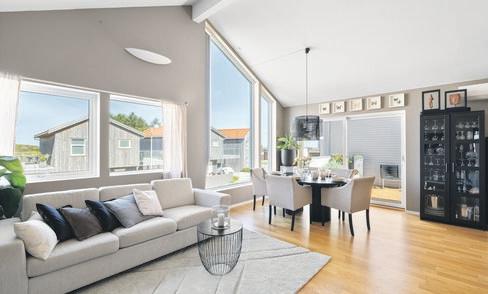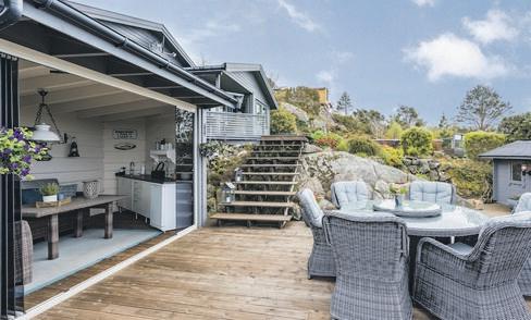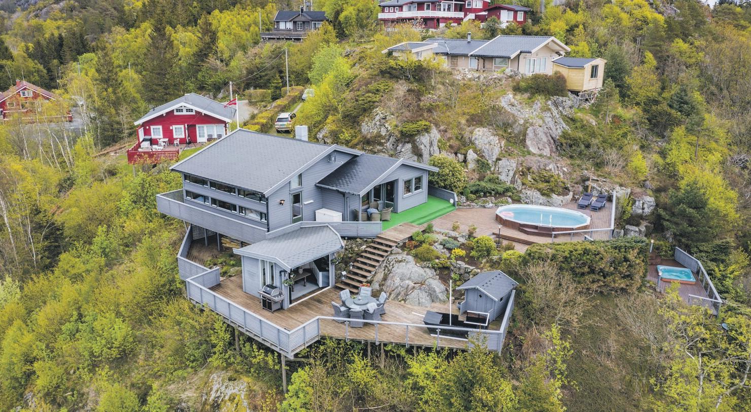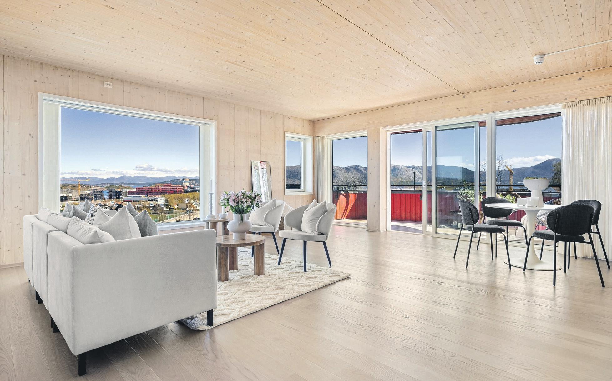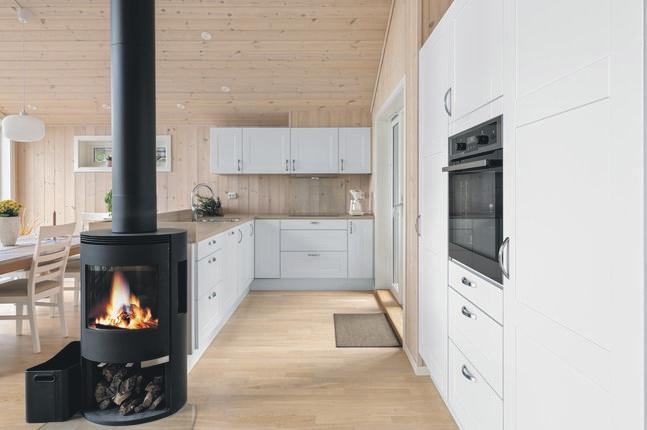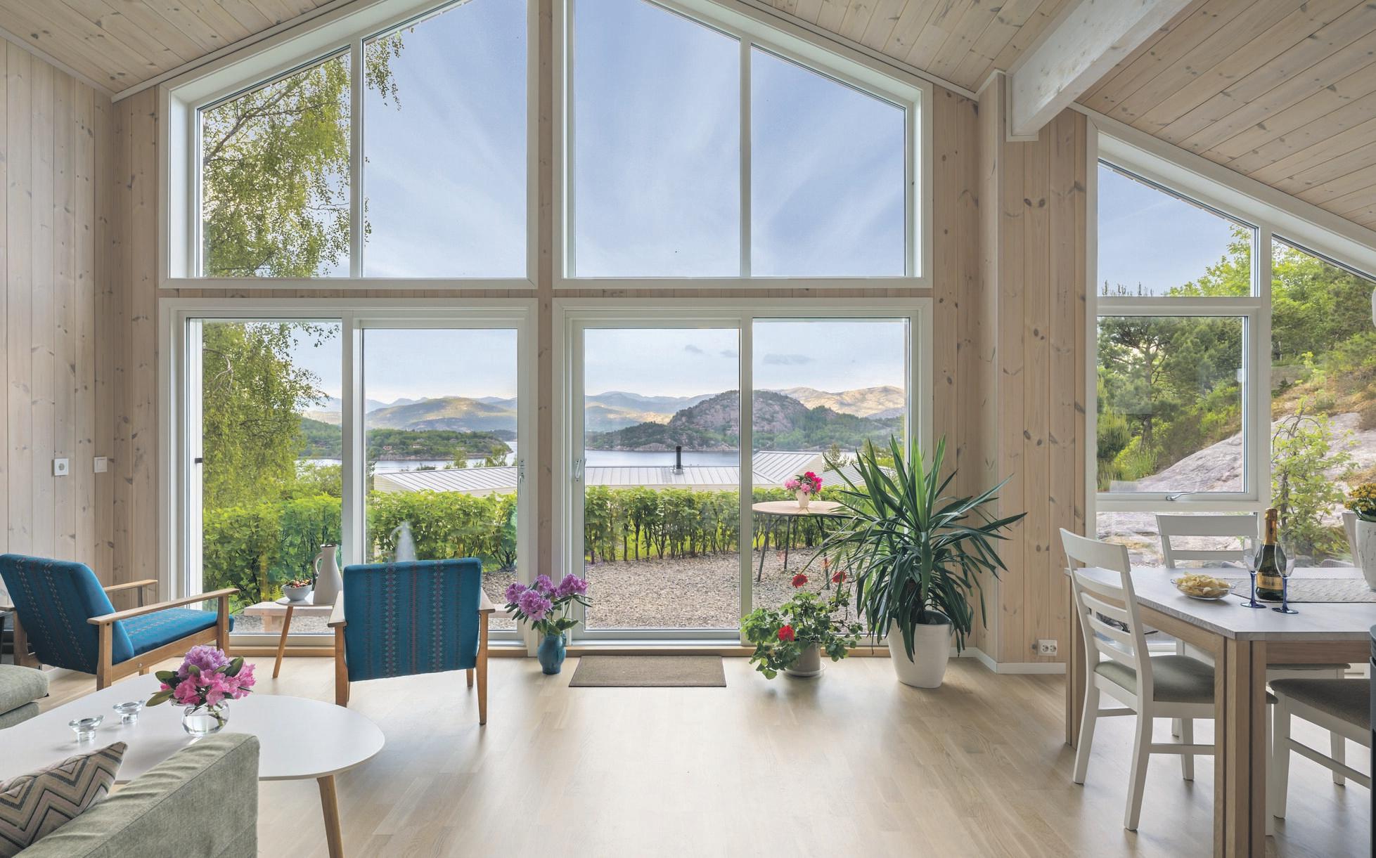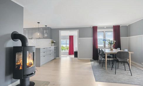Den formidable utsikten følger deg, og nytes både fra spisestuen, godstolen, sofakroken, kjøkkenbenken og uterom. Moderne peisovn for ekstra kos på høsten.
