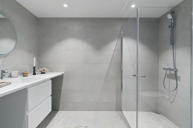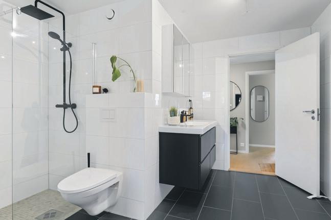 - Badet er helfliset med 20x20 på gulv og 40x20 på vegg.