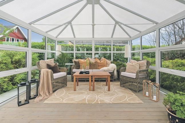 Tomten er på hele 2455 m² og er pent opparbeidet med plen, innkjørsel, diverse beplantning, lune terrasser og drivhus.