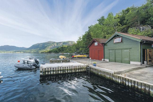 Boltreplass for barna på stor utsiktstomt. Rusle ned til sjøen og nyt eget naust for krabbelag og kos. Nyrenovert brygge felles med nabonaust, med båtplasser på hver sin side.