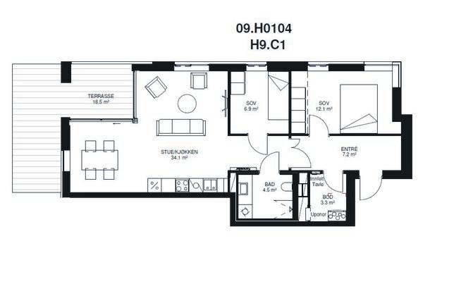 Totalpris kr 2 819 750 BRA/BRA-i ca. 79/74 m² Antall soverom 3 Byggeår 2014 Tomt 1057 m²