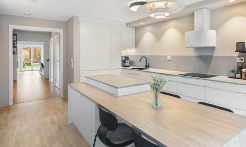 - Multiform-kjøkken i hoveddel med integrerte hvitevarer som medfølger i handel.