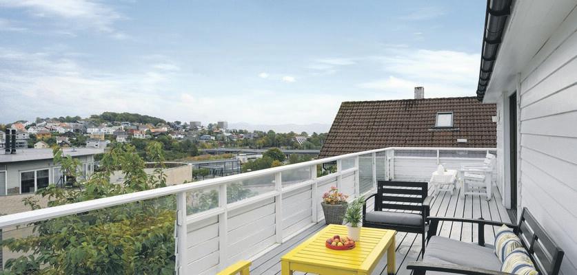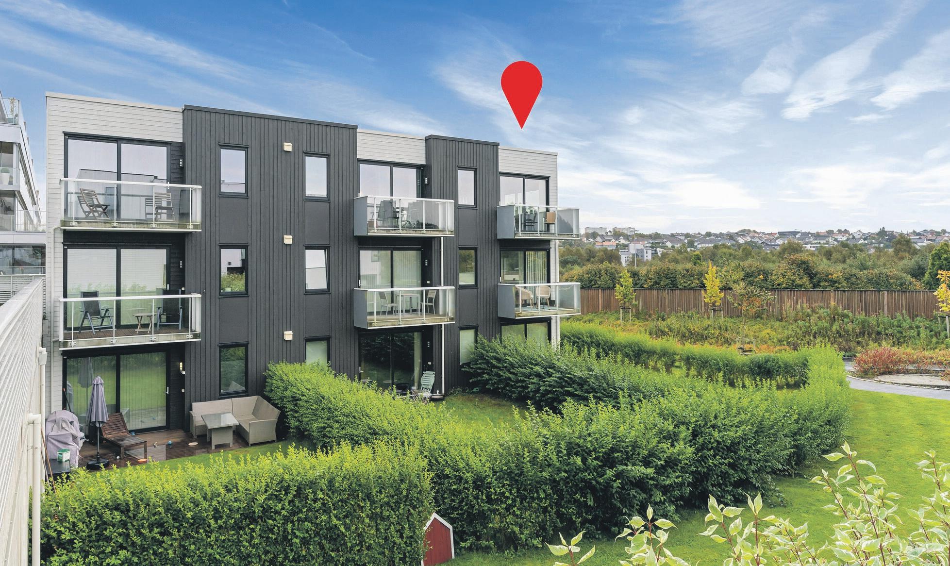 og innholdsrik leilighet på ca. 93 m2. Leiligheten har en meget fin beliggenhet i terrasseblokkens 2. etasje. Her har man rimelig enkel adkomst, samtidig som man på den store verandaen får meget gode solforhold og en herlig utsikt. Tilbaketrukket, men sentrumsnær beliggenhet med en drøy kilometers avstand fra leiligheten til Sandnes sentrum.