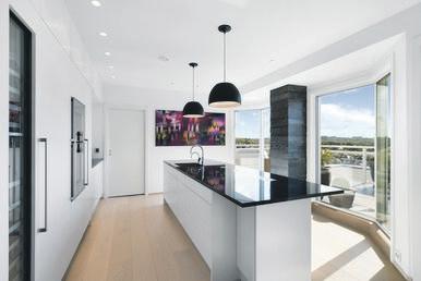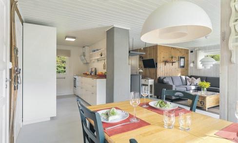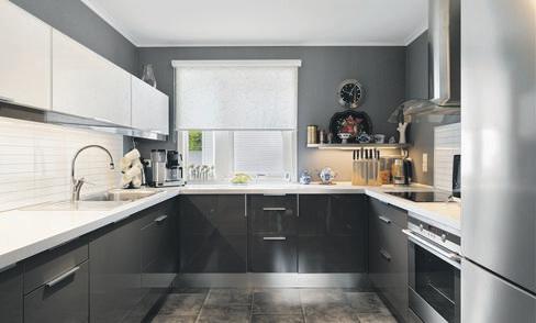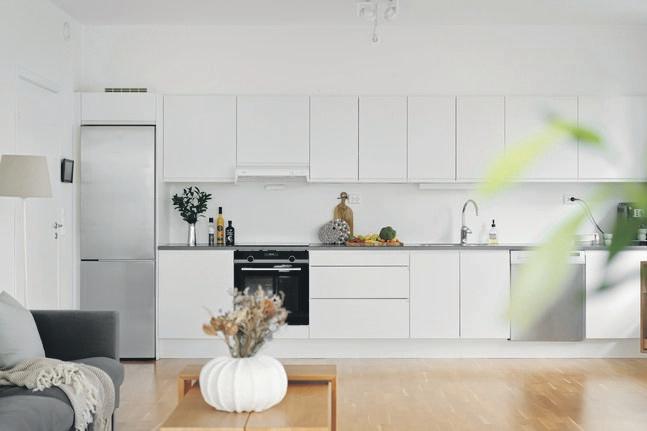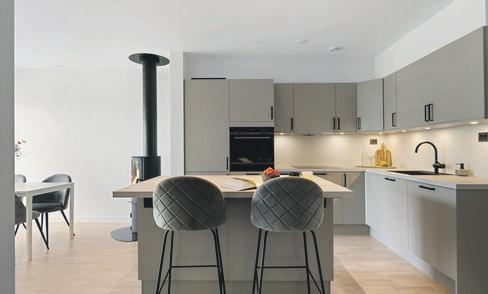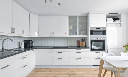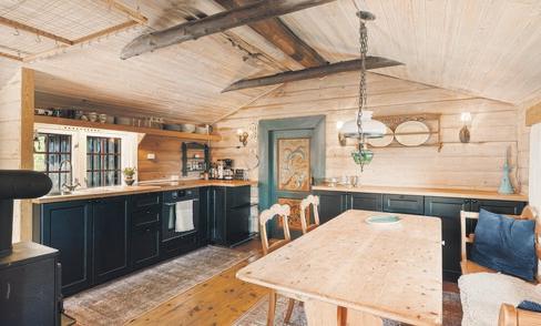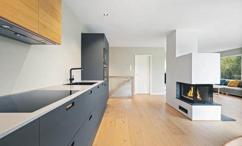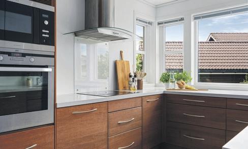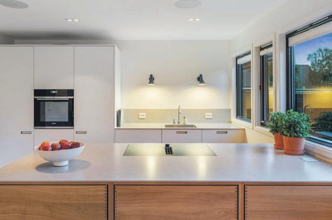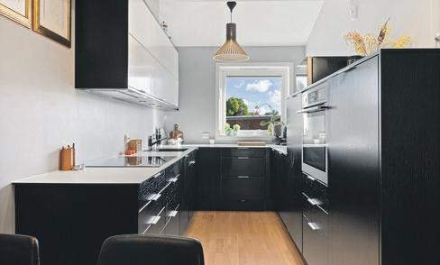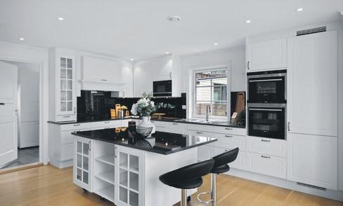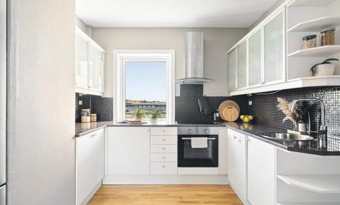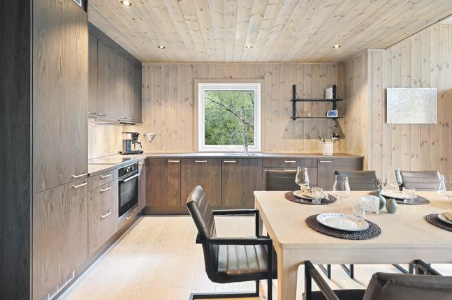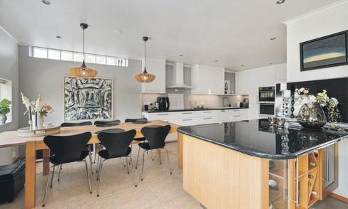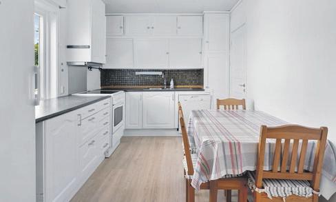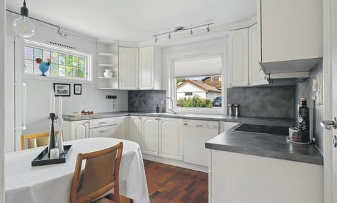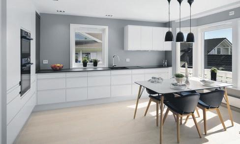 - Innbydende kjøkken i tidløs utførelse, god arbeidsplass på benken og sosial 'barløsning'.