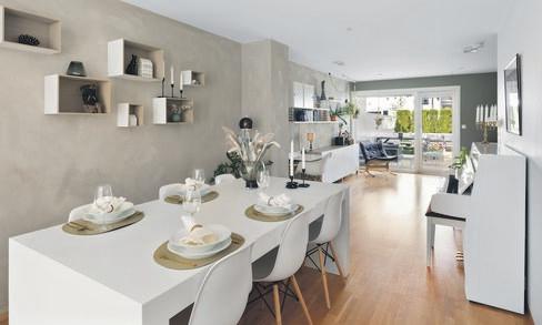 Tidsriktig oppusset og smart løst rekkehus m/gjennomgående lys. Skjermede, solrike uterom og få min til det meste. Lader Prisantydning