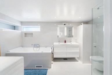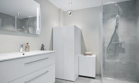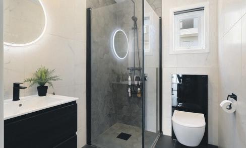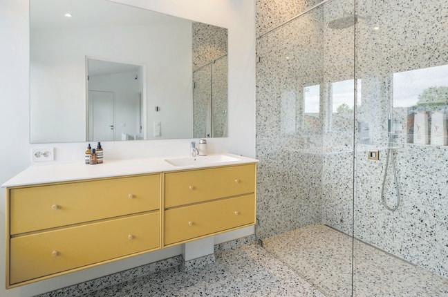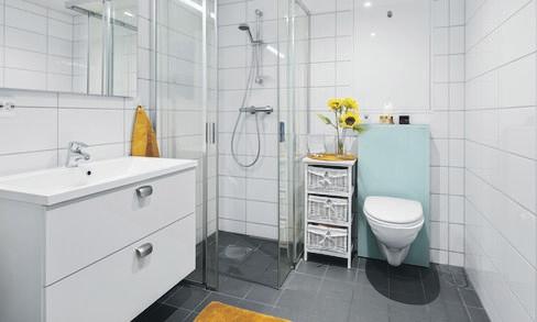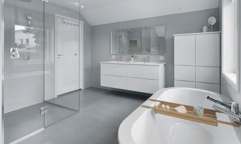 - Pent helfliset bad med varme i gulvet og delvis skjult vaskeromsnisje.