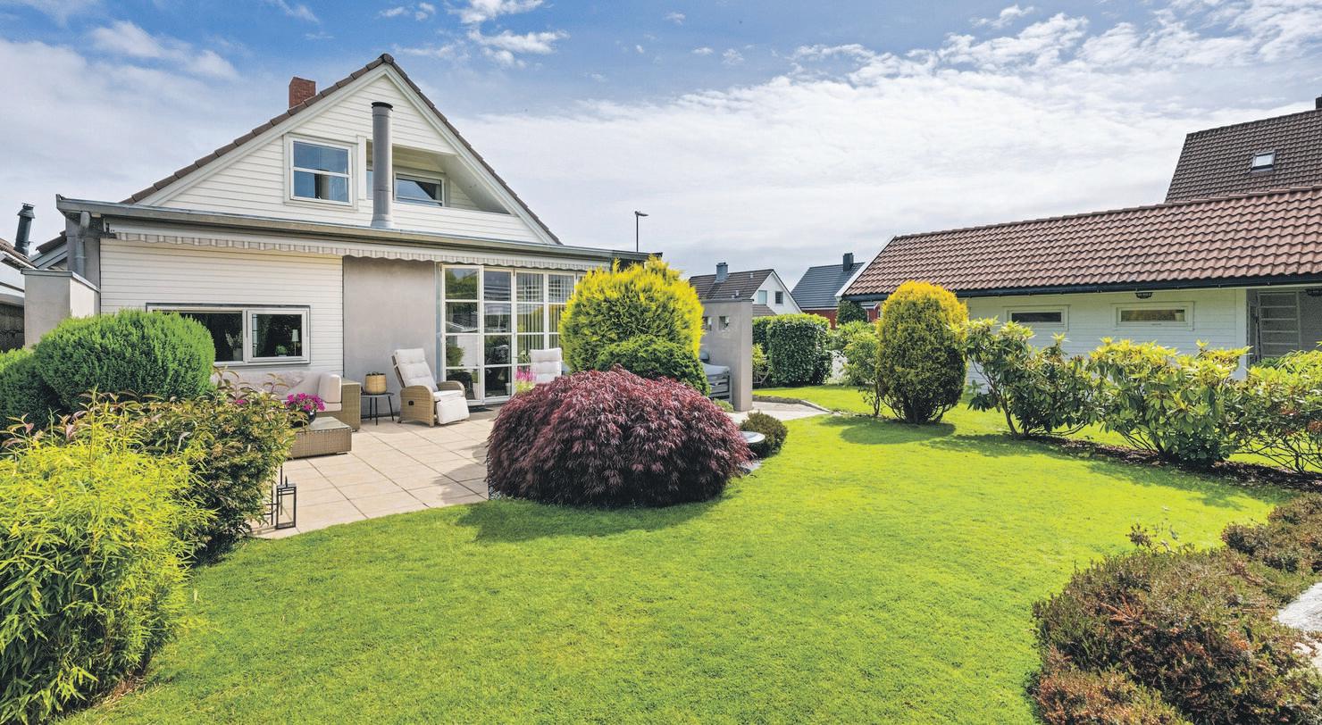 Betydelig og pent renovert enebolig m/mulighet for utleie. Velstelt. Herlig hage. Sentralt + tilbaketrukket. Solrikt.