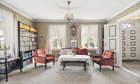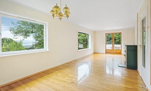 * Romslig stue med parkett på gulv og gode vindusflater. Nysparklet og nymalte vegger