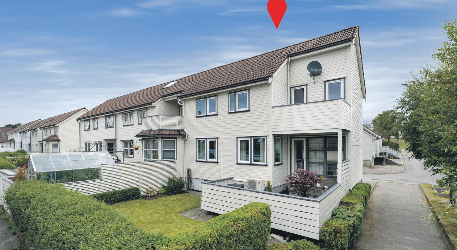 Sjeldent komplett og pen enebolig i kjede. Herlig, skjermet, solrikt uterom. Blindvei - endetomt. Vaskerom i bi-inng.