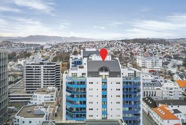Vi har gleden av å presentere denne spesielle toppleiligheten i St. Olav som utgjør hele toppetasjen.