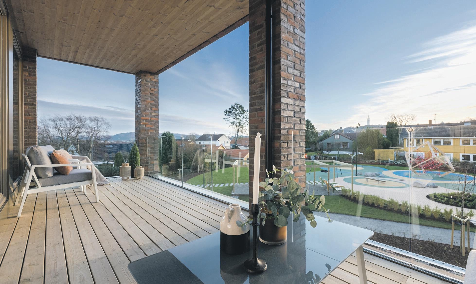- Stor terrasse som er skjermet og har gode solforhold. - Direkte inngang via bakkeplan. - To utvendige boder - Parkering i lukket anlegg. - Støpt dekke mellom etasjene. - Heis. BRA/P-rom