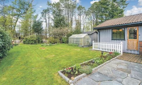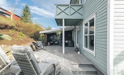 Store deler av tomten er opparbeidet med terrasser hvor du kan flytte deg etter vær, vind og klokkeslett.