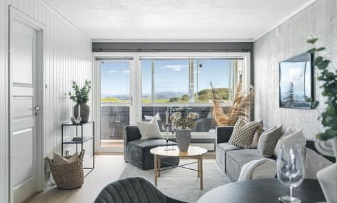 Den moderne og sentrale leiligheten, som kan skilte med solrik balkong og nydelig utsikt, gikk til slutt for 410.000 kroner over prisantydning.