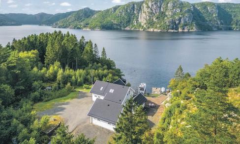 Denne eiendommen har det meste. Stor tomt på nesten 7 mål, egen strandlinje med brygge, flott to etasjers bolig med stor terrasse og utsikt utover fjorden, dobbel garasje med varme i gulv og uthus for hobby og lagerplass.
