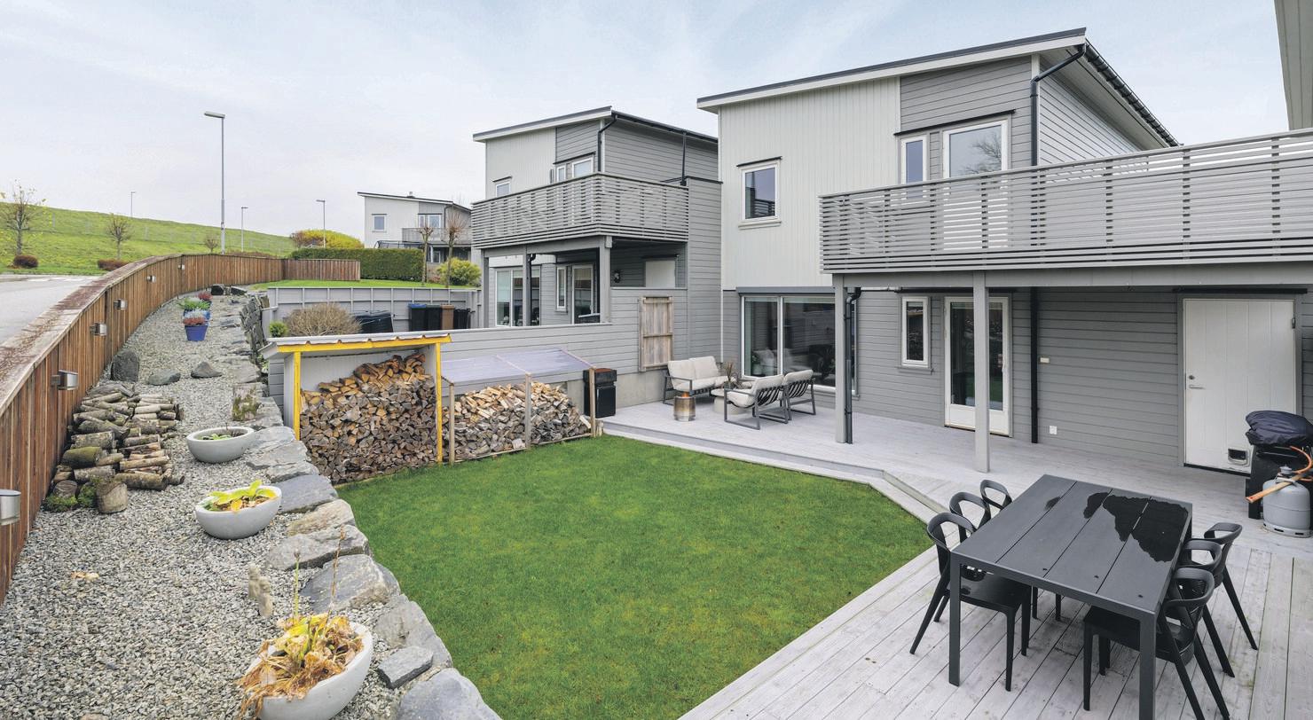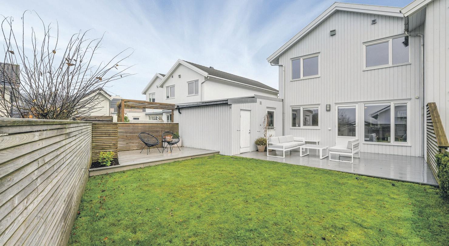Lettstelt og pent opparbeidet tomt. Lun og skjermet terrasse med meget gode solforhold og hage med plass til trampoline.