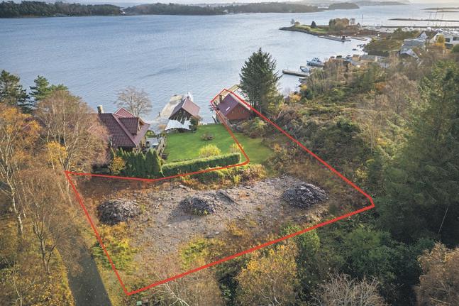 Tomten er spennende og innholdsrik og består av bl. a flere soner, plattinger, egen brygge og naust. Tomten er i tillegg opparbeidet med byggeklar tomt og godkjente tegninger for oppføring av nytt hus. Det vil være plass til oppstillingsplass for biler. I tillegg er det stor plen og diverse beplantning, busker og trær.