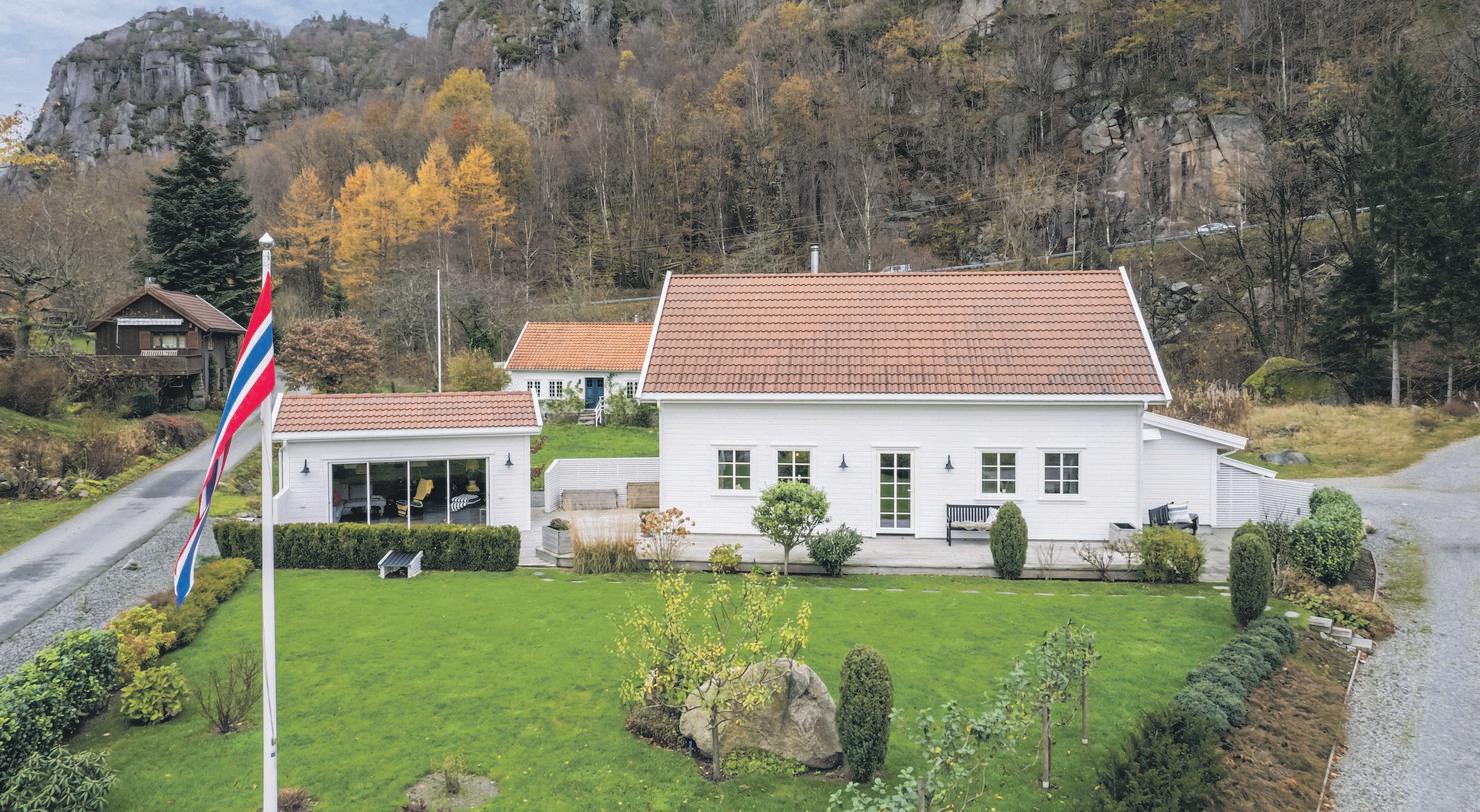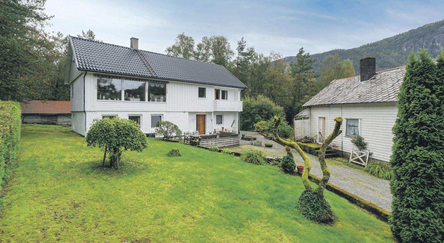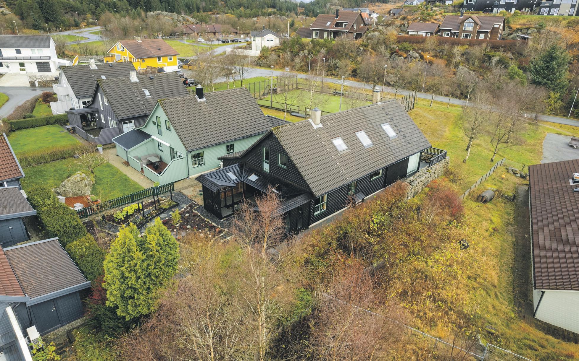 Landlig og sentral enebolig m/idyllisk plassering mot grøntareal. Blindvei. Raskt tilgang E39. Få min fra sentrum. Turomr.