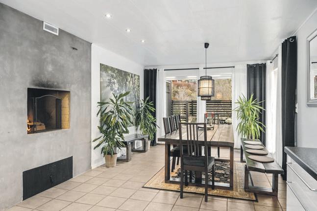 --Flott åpen stue og spisestue løsning med utgang til solrik tomt og terasse hvor en kan nyte ettermiddagssolen.