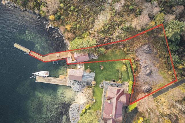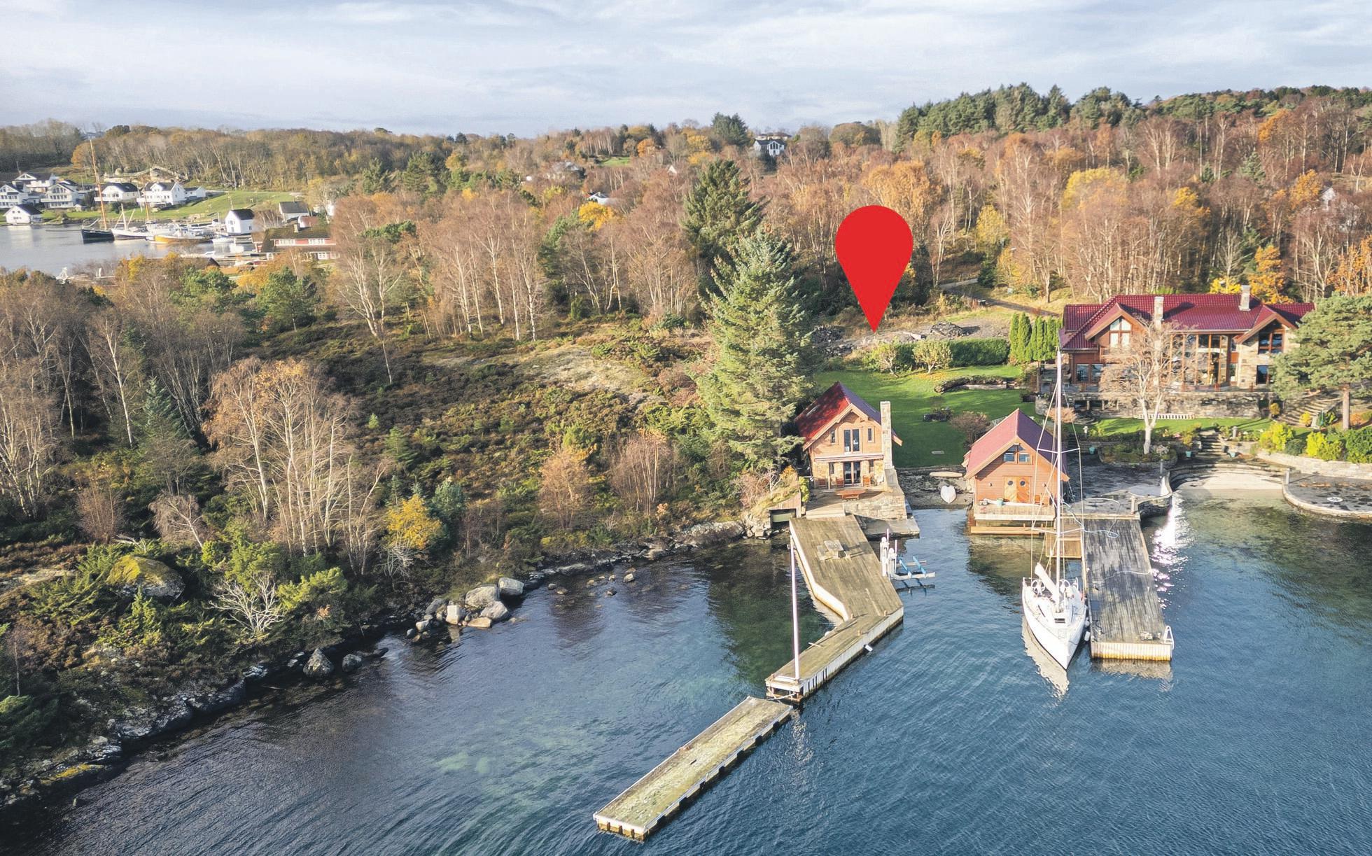 Praktfull eiendom med bryggeanlegg og strandlinje.