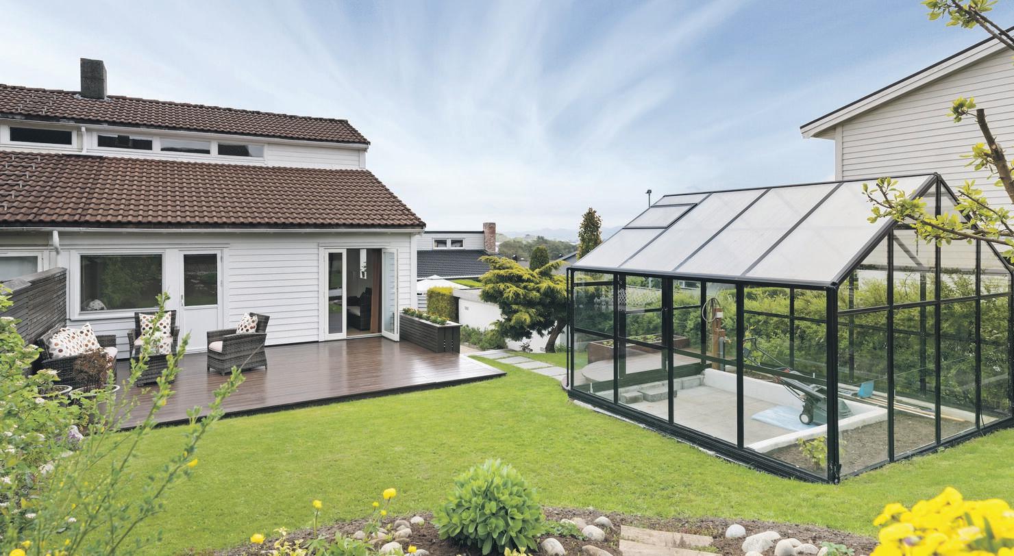 - Hagestue/innglasset balkong hvor planter og blomster også stortrives.