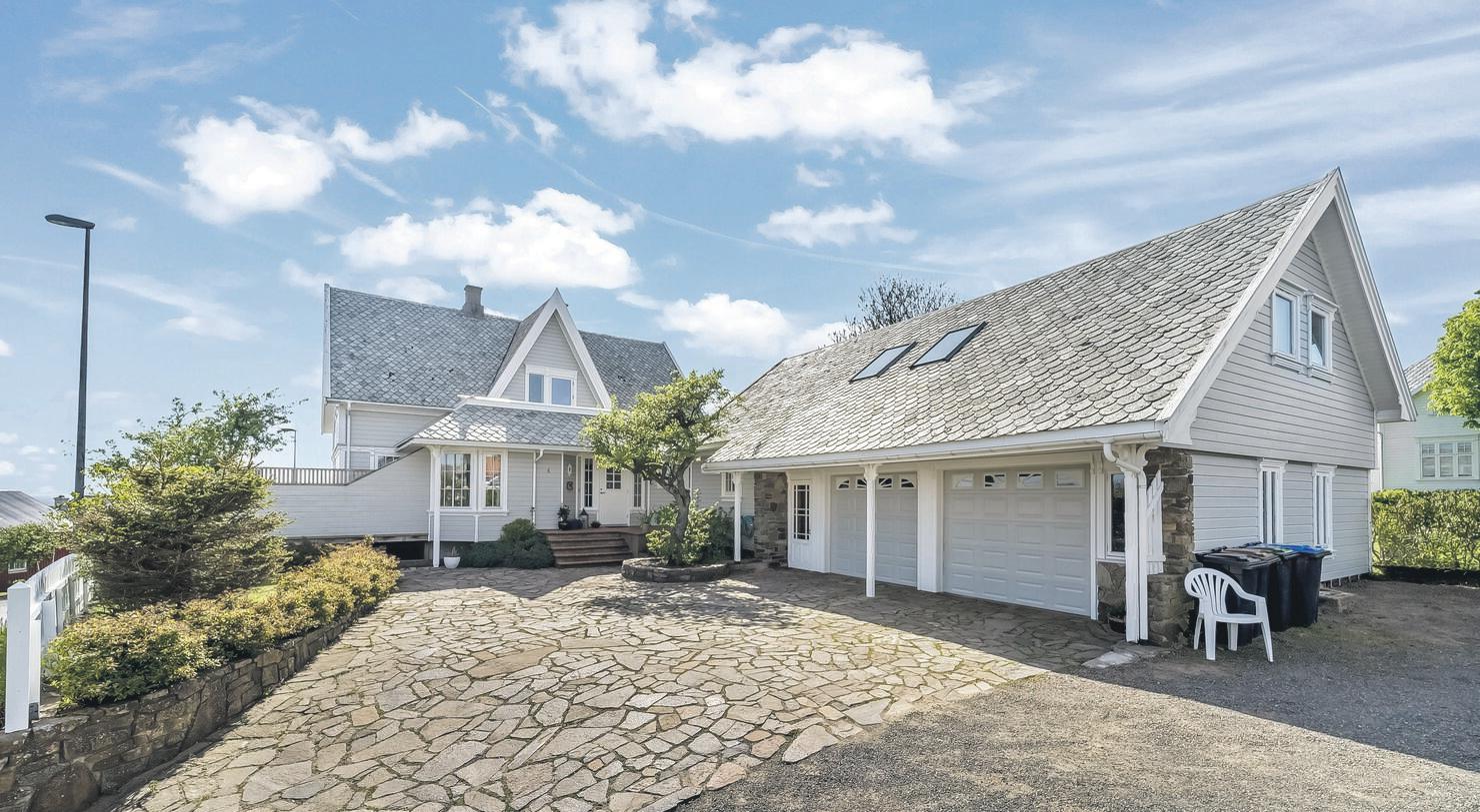 Velholdt eiendom med pent opparbeidet uteområde - Flott utsikt til havet - Boligen er særdeles innholdsrik og kan være ypperlig som generasjonsbolig eller feriebolig for 2 familier. Ingen boplikt i Farsund kommune.
