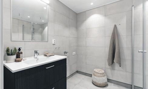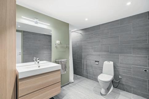 - Romslig, pent og helfliset kombinert baderom og vaskerom.
