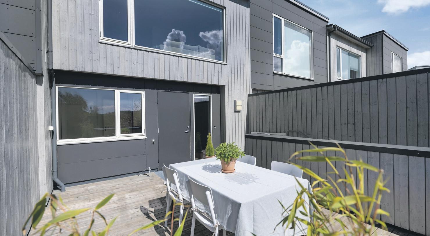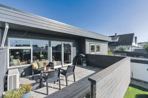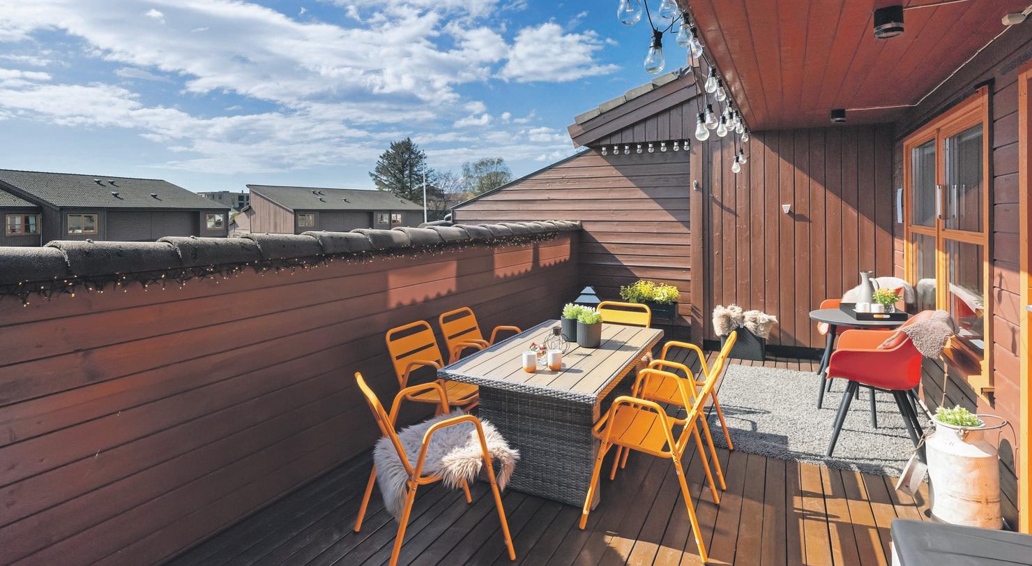 Optimal selveier m/stor, solrik takoverbygget terrasse og luftige omgivelser uten innsyn. Carport. Egen inng. Sentralt.
