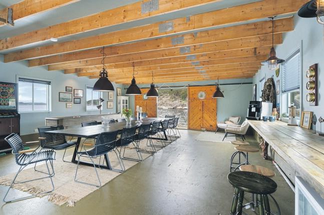Stort naust/sjøhus på 87 kvm over 2 plan- her er det plass til langbord og hyggelig å invitere gjester!